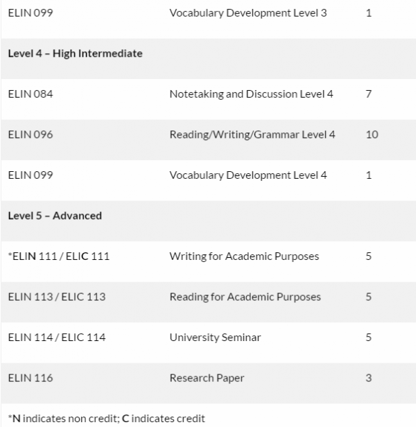 | 학비 | ELI 학기당 수업료: $ 3800 ( 분기당 $ 100의 수수료 부과)