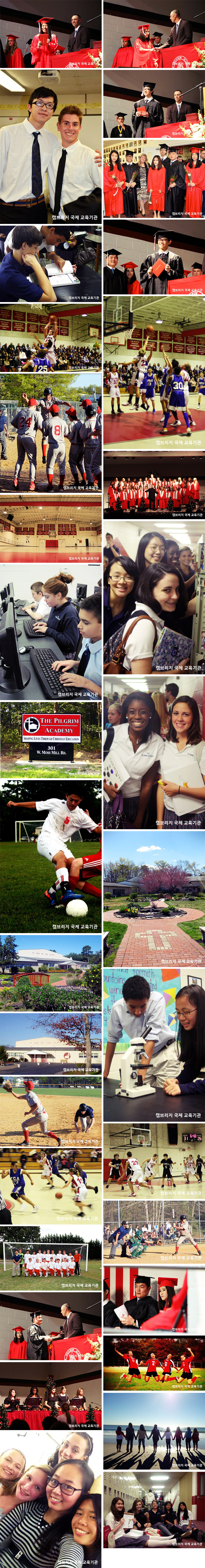 학교소개 The Pilgrim Academy는 Jersey 해안의 한적한 Harbor township에 위치하며, 미국의 최고의 관광지 중 하나인 Atlantic City와 가깝습니다. 주변에 명소가 많은 학교이며 학교는 국제학생들에게 체계적인 ESL 프로그램을 제공합니다. 다양한 음악 프로그램을 통해 학생의 음악적 재능을 살릴 수 있습니다. 그리고 졸업생 95% 이상이 대학을 진학하는 높은 대학진학률을 가진 학교이기도 합니다.